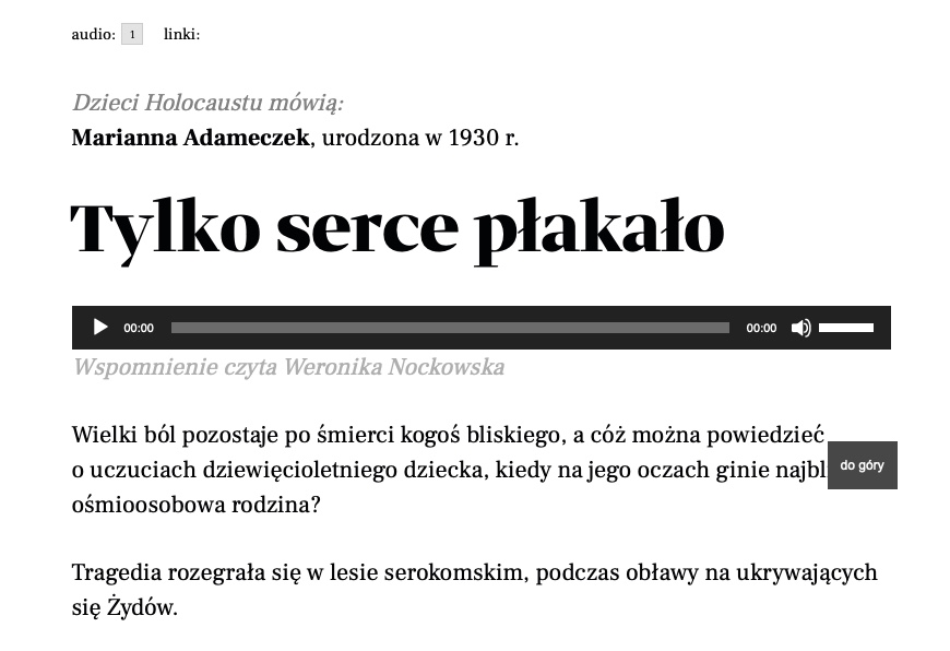 Many text reports also contain photos, video recordings or links (references) to other websites; you can also listen to several dozen memories – the texts are read by actors.